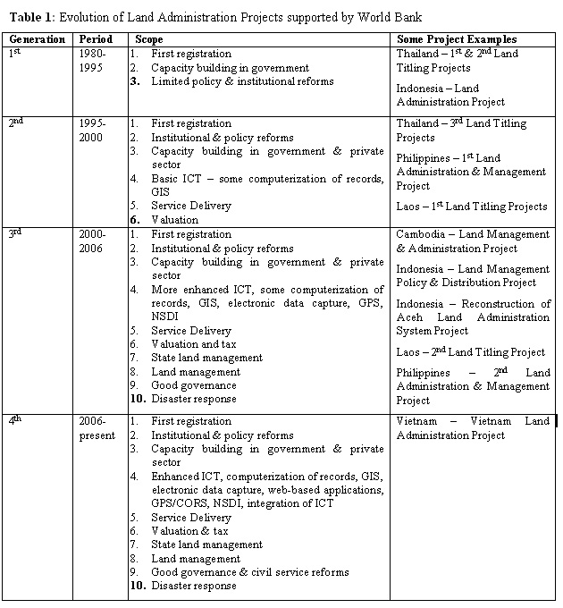- World Bank, 2003, ”Comparative Study of Land Administrative
