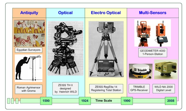 of the different eras of surveying instruments. Thereafter the actual