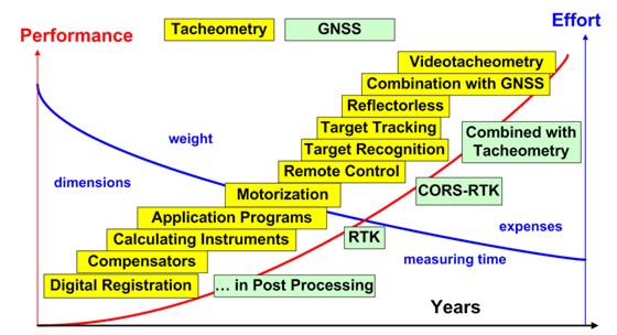 development of the main instruments (total stations, digital levels, and