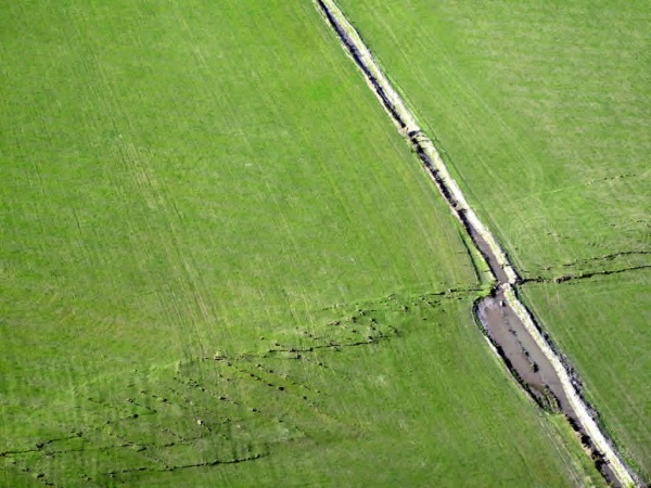 Figure 2. Trace of the Greendale fault displacing a water canal
