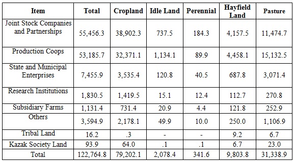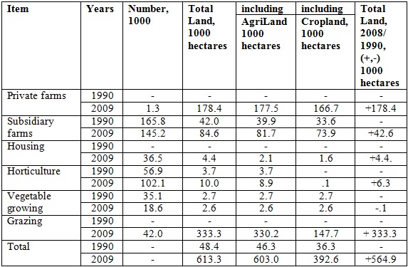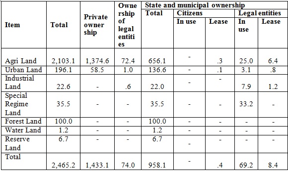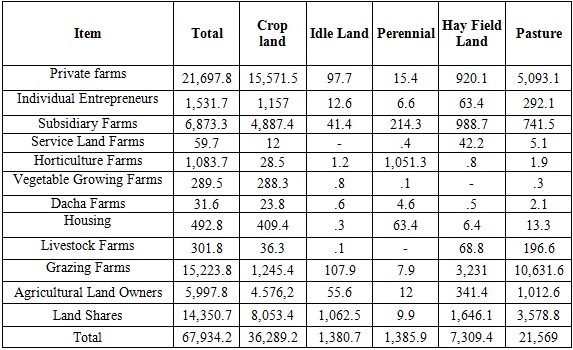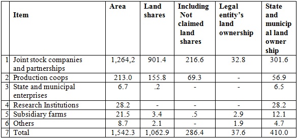 The private land ownership plays the dominant role in the regional agriculture and consists mostly of land shares belonged to former collective and state farmers (see Table 10).