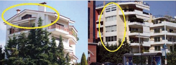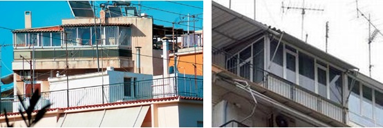 Figure 1. Illegal room under the roof of the building (left); build-up semi-open areas within the ratified outline of the volume of the building (right). Source: (Dimopoulou et al, 2007)