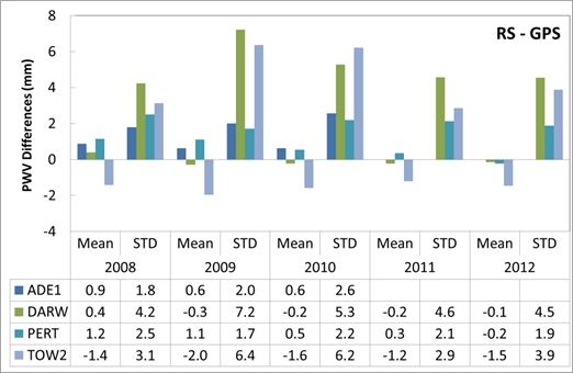 GPS and radiosonde measurements with a mean difference of less than 0.1