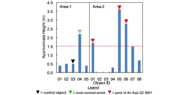 Eight sonar contacts were recorded by SSS and their apparent heights