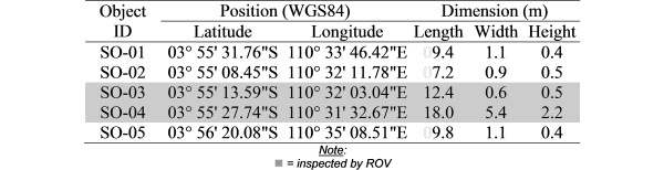 Table 3 List of suspected objects in Area-3
