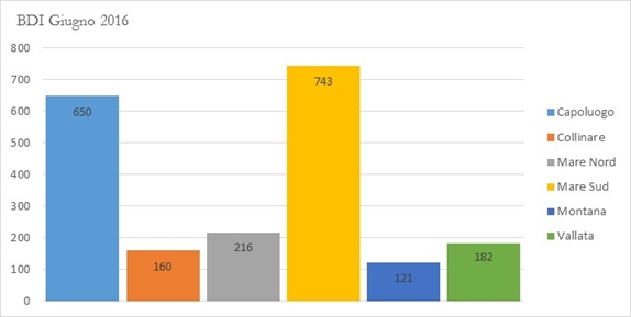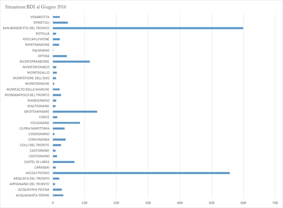 Figura  SEQ Figura \* ARABIC 3: Situazione BDI al Giugno 2016 per Comune di Appartenenza