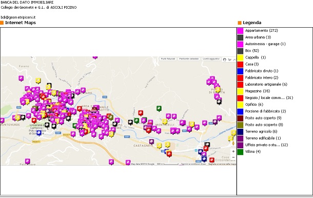 The project, which became fully operational and usable from the 11th December 2015, is integrated with complete sets of data usage and instructions readily available from the Provincial College of Surveyors of Ascoli Piceno’s webpage. Monthly developments are published regularly that allows analysis of multiple segments in each municipal area.