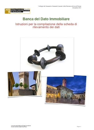 The Banca del Dato Immobiliare (BDI – Real Estate Comparable Database) is a project spearheaded by the College of Surveyors and Graduate Surveyors of the Province of Ascoli Piceno developed in 2014. The pilot project was created to provide a strategic tool to all entities operating in the real estate sector, for example: as a market analysis and asset management tool for enterprises; for Jurisdictional authorities, the project would offer greater guaranty and transparency on judicial sales and division while reducing eventual divergence between the real estate value and price; for real estate valuers and appraisers, it serves as an essential instrument in order to remain compliant with the International Valuation Standards, Real Estate Valuation Code by Tecnoborsa, the ABI Guidelines, the UNI 11558 and UNI 11612.
