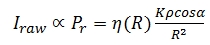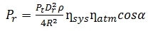 power as a function of the range is proportional to 1/R2 (R = range) in
