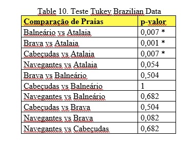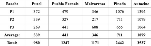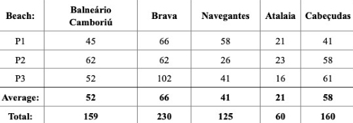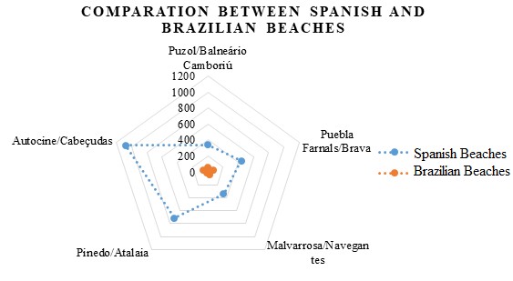 beach of Puzol had the lowest. In Brazil, the beach that obtained the