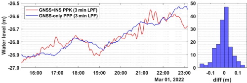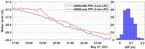 affordable GNSS receiver aboard a USV and a pressure sensor deployed