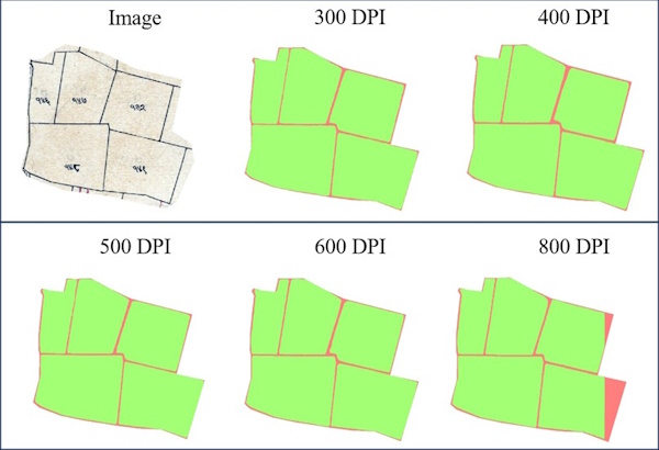 cadastral maps were scanned at a relatively low resolution (300 DPI),