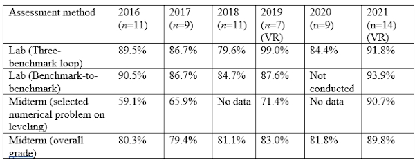 assessment results of surveying engineering labs in immersive and