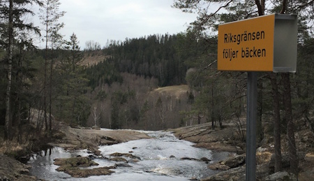 Figure 3: In some parts, the boundary line runs along creeks, occasionally indicted by sign posts saying that the boundary line follows the creek (“Riksgränsen följer bäcken”).