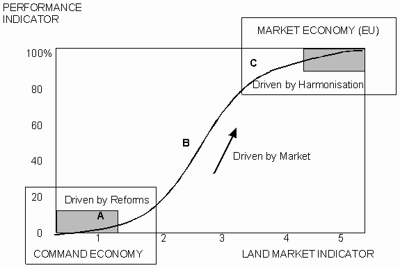 Traditionally, the approach has been to put in place the legal framework, then identify the necessary technical matters to carry out the mandated tasks. Given the close connection between the performance of this state sector and the impact on declared cabinet level policy, land administration authorities cannot adopt a purely technical viewpoint and must consider the wider costs and benefits. Cabinet level policy needs to address the market transition, open and transparent markets, EU membership, the creation of a viable agricultural sector, efficiency in the administration and the promotion of the private sector.