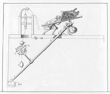 The measurement of the earth's gravitational force and its variation with distance from the earth's surface was the theme of a series of experimental investigations with pendulums, balances and falling weights that Hooke performed in the years before the Great Fire and which he continued from time to time later. Through these experiments Hooke tried, but failed to discover what he thought must be true: that the earth's gravitational force followed an inverse square law. He lacked Newton=s mathematical genius and capacity for abstraction that later would result in Principia, but as a mechanist he sought evidence by experimentation. On the roof of Westminster Abbey he used a balance to weigh a piece of lead with a thread attached. Then he attached the other end of the thread to the balance pan and lowered the lead to just above the surface immediately below and re-weighed it to see if it weighed more, or less, when closer to the surface of the earth. After several trials and independent checks he concluded that if there was a variation in gravitational attraction over the height difference used, it was too small to be measured. He continued similar experiments over greater height differences, making use of the steeple of (old) St Pauls and some mines at Banstead Downs in Surrey, but with the same conclusions. He experimented with pendulum clocks at the bases and summits of hills, and with timing falling bodies at different elevations, but could detect no changes. He recognised that it was necessary to design a mechanism that would change noticeably as a result of a very small change in gravity. He produced a sketch (Hooke, 1666) showing a weight counterpoised by a spring in such a way that a small change in gravity would produce a noticeable flexure in the spring, so introducing a principle of gravimetry which only much later could be made to work.