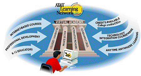 Referring to a commercial press release by the company AT&T on October 16, 1998: "Virtual academy is an online centralized resource that provides teachers and educators with access to web based professional development opportunities and courses. It underscores AT&T's commitment to support lifelong learning for teachers into the next century by helping them meet their expanding credential requirements – anytime, anywhere." The virtual academy of AT&T's is a collaboration with Penn State University and a publishing company called T.H.E. Journal.