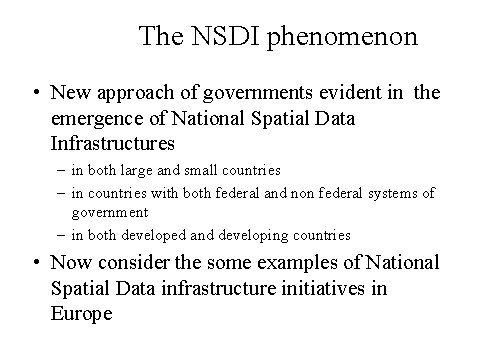 spatial data infrastructure initiatives in Europe and elsewhere in the