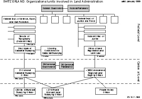 And once being built up it is nearly impossible to change this organisational structure. Sometimes this can happen the other way round as well. Denmark for example the cadastral department (part of Minister of Agriculture), the Geodetic Institute (part of Minister of Defense) and the Nautic Mapping Division (part of Minister of Traffic) amalgamated in 1989 and established the Danish Survey and cadastre.