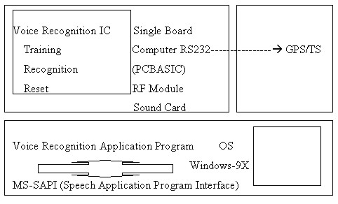 3. CONFIGURATION AND OPERATION OF MODULETo prepare the application by voice recognition, it is necessary to operate the engine to be connected with computer. In general, the engines, developed by MS and AT&T, have been widely used. In this thesis, we used voice recognition engine V4 of MS, operated it with Windows-9X/NT at the same time, controlled mike and speaker by API function, set the voice pattern of the person who talked, received or controlled the surveying performance by surveying program using serial communication, and processed and saved the performance through recognition system. Main programming modules were configured with modules of signal conversion process by Single Board chip due to the IC operation for voice recognition, generation of code by serial communication, modules for processing graphic and receiving the GPS performance. In addition to hardware module, it passes through training process to raise the degree of understanding, compress into several words and passes through standardization process. The minimum words required for processing surveying process, and geo-features of ground facilities are the graphic recognition words for CAD screen processing, surveying words to be used in the setup an instrument point - orientation of back sight - observation and recording process, which are required in surveying, and the words for processing topology and selecting the code to classify the geo-feature. Of course it is possible to use lots of recognition words, but the user may not remember the words, if it is too much. 4. APPLICATION AND ANALYSIS OF VOICE RECOGNITIONGeo-feature can be largely divided into surveying activities and geo classification information. Surveying software, surveying standard of each country, surveying organization have its unique coding system. The management of this geo-feature often uses unique methods given the efficiency of program, the features of works at organization. To unify the diversity, it converts the external file using Look-Up Table to change the definition between codes. The efficiency is high only when adopting the minimum number of recognition words required for voice recognition through analysis per feature of code. This coding data vocalizes error and warning message, the message on accuracy of surveying, work confirmation message, CAD screen operation, graphic processing. This voice recognition module uses the method of using sound cards in Notebook in terms of software, and the method of forming separate hardware and IC, and transmitting the commands by serial communication. Software module receives the data from communication port of GPS receiver, converts the GPS performance, the longitude and latitude coordinates of NMEA (National Marine Electronics Association) to national coordinates, and processes the works of classifying the attribute, Tag and event work on surveying point, screen display of receiving coordinates. It consists of the preparation of the words required for surveying and voice recognition, inspection of recognition level, Speech-to-Text training and the process of inspecting and processing the exactness. By operating this software, it can provide the security measures by speaker-dependant, easy and convenient working environment, by avoiding the limit of simple key entering works. 4.1 Application of Geo Coding on Total StationFor surveying works, install instrument point where is the standard point of surveying, enter the coordinate of back sight point, and generate the operation code. Then, calculate the coordinates of instrument height and back sight point, prism height and reference orientation angle, and call the voice recognition command to set the instrument installation and back orientation. Then, collimate on all points, execute the command by voice recognition words without keyboard work, and enter the classification code of surveying point. Then, execute graphic processing and topology processing. In case of graphic processing, use separate prefix or attribute, using surveying performance and graphic narrator. Almost all uses prefix or narrator (Ex: X,Z,-,GPS, TS, STN,BK,SS---), but direct graphic processing at site is more effective. 4.2 Application of RTK (Real Time Kinematic)GPSSince GPS provides location information in real time, convert it to regional coordinates using the parameter with current regional coordinates. In particular, determine whether there is a consecutive surveying in accuracy from the information, deliver the message to user, and finally capture it in accordance with coding process. After back processing on this, this can be converted to the data that user wants. The relations among these works pass through the process as shown below.