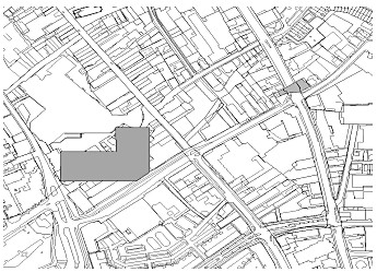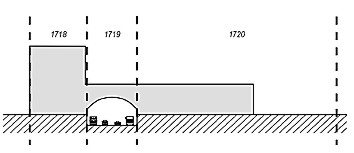 Figure 2. Cadastral map of a construction above the surface (see figure 1) The arrow indicates the view position in figure 1. The building is located on three parcels through which the legal status of the building is registered. The firm 'Nationale Nederlanden' possesses the whole building. The rights and restrictions of the parcels concerned are as follows: Municipality possesses a restricted property on parcels 1719 and 1720. 'Nationale Nederlanden' possesses an unrestricted property on parcel 1718, a right of building on parcel 1719 and a right of long lease on parcel 1720. 5. COMPLEXITIES OF THE CURRENT SOLUTIONS IN THE NETHERLANDSThe current registration of the legal status of real estate objects with a 3D component leads to complications (Stoter, 2000):