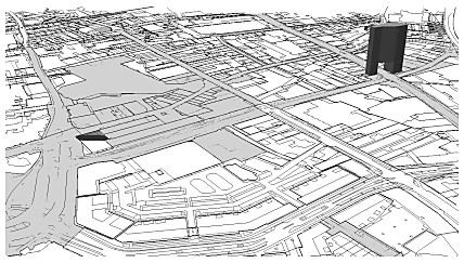 Figure 3: the concept of a 3D cadastre In figure 4, the 3D view of the situation is shown in which the surface parcels that intersect with the projection of the two objects are selected. In the cadastral registration, these parcels have a juridical link with the objects in question.