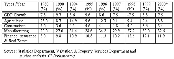 THE MANAGEMENT OF PUBLIC PROPERTY IN MALAYSIAZailan MOHD ISA, MalaysiaKey words: Malaysia, property management, public sector, and property management practice. 1. INTRODUCTIONProperty assets such as land and buildings are a key resource for all types of organisations, including public sectors. For the last two decades positive effects of good property management have received increased attention as the stock of new buildings costing billions of ringgit are being put into operation. In private sector, this attention is due largely to the recognition of the significant contribution property makes to ultimate success or failure of a business and recognition of strategic importance of property to a company's financial structure. While within public sector organisations property can be considered as having financial contribution and effect upon annual financial statements, asset base and as well as on resale values in case of privatisations of any public entities. Therefore property resource, in the same way as human, financial and information resources, contribute to the success of these organisations and need to be effectively and efficiently managed. These property assets have to be professionally managed to ensure that the asset value is maintained. It is acknowledged that not only is a large amount of capital devoted to these property assets, they can also add value to an organisation through effective and often creative management. However, do public sector organisations in Malaysia recognise that property, both raw and buildings are valuable assets? Landed professionals have been calling for the need to manage public property more professionally for a long time (Dass, 1985, Marbeck, 1988, Singh, 1994 and 1996, and Mahadi, 1998). Hence, realising the importance of property to public sector organisations, this paper will discuss the functions of public property management, focusing on the management of office buildings. In doing so, this paper will explore the need for property management and discuss the management practice in public sector property management. 2. THE NEED FOR PROPERTY MANAGEMENTIn understanding the need for property management, it would be relevant to look at Malaysian economy indicator and the place of property in its economy. Before the outbreak of the Asian financial crisis in mid-1997, Malaysia experiences rapid economic growth and property sector plays a significant role in this growth. Table 1 below indicates that the Malaysian economy has performed above 7.0% with the exception for 1998. Malaysia has moved from an agro-based economy before the 1980s to manufacturing and services orientated in 1990s. Manufacturing, and finance insurance and real estate respectively contributed 30.0% and 12.1% of the economy in 1999 compared to 20.0% and 8.0% in 1980, whilst agriculture decreased from 23.0% in 1980 to 5.8% in 1999. Table 1. GDP Growth and Selected Domestic Products By Industries - Share Of GDP