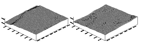 After all the points of each sample area were matched using the resulted matching size, we obtained conjugate points of the sub-pixel unit. 3.4 Determination of The Three Dimensional PositionsObject coordinates were generated by applying the space intersection theory, where conjugate points are resulted by matching, and exterior orientation elements are obtained by the calibration process of systemic error. Figure 4 shows the DEM of each sample area.