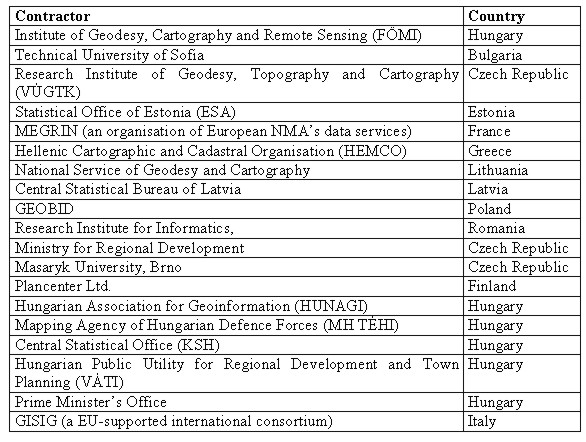 The project was co-ordinated by the Institute of Geodesy, Cartography and Remote Sensing (FÖMI), Hungary and was implemented by a consortium of 19 organisations from 12 countries, representing the national mapping agencies, statistical offices and other public and private organisations of the region as given in the following table.