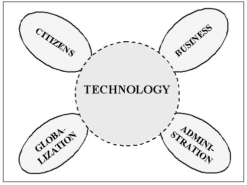 In the following there are a few examples on possibilities that the potential technological developments will offer to citizens, public administration, business and the ongoing activities within globalization. Citizens look for experience and adventure. They will expect that all information independent of where it is stored will be available at their fingertips present as well as historical versions 24 hours a day. Some day self-administration and self-service will be taken for granted. Therefore it is urgent and necessary to combine the information systems with actual and updated knowledge. This will not be limited to traditional e-commerce. In a near future it will be possible for the citizen to update information stored in the different databases via personalized portals. The geographic based information systems will directly or indirectly influence the way that the public administration is organized. With access to all data and knowledge it will become possible to supply as well the politicians as the citizens with the same information as the case officer and it becomes possible to decentralize decision competence. Because it will be possible to combine data from sources, even sources on different levels in the administrative hierarchy it will be possible to break down traditional bureaucratic barriers even barriers between the private and the public sector. Spatial information will be one of the catalysts in reengineering of many administrations. Systems like this demands common references, common "keys" between different data sets, seamless databases, common standards etc. Spatial data or information stored in traditional paper maps is static. Each map sheet represents a snapshot of selected objects at a given time, and "the owner" has an exclusive right to the map and the data the map is based on. In contrast to this a digital map or better a collection of spatial and spatial related data is dynamic with the time parameter as a part of the individual data collection. In "the digital world" we have a situation with different owners of spatial data, many different users and an unknown number of applications. In this context it is not possible to maintain a traditional hierarchical marked. In stead we will experience a marked organized as a network with many to many relations. The users, as well public as private, groups or individuals, will take it for granted that it is possible to combine data from different sources. To handle this situation the geo information business has to be reorganized. We will see new business units based on partnership and strategic alliances. Some of these business units will be global. Internet and E-commerce is some of the catalysts in this process. There is a general trend towards being Global. Agenda 21 and The Habitat II Global Plan of Action address the need for information, development of appropriate databases and exchange of information as conditions for creating the basis for sustainable development in all regions of the world. One reason for this is that the global society faces great problems concerning urbanisation and the influence of urbanisation on coastal zones and environmental conditions overall. The ongoing development includes globalisation of both environmental problems and trades. CHALLENGESThe technological development will continue and the possibilities for handling spatial data and information will proceed. When we are looking at the data and the formalized procedures for creating models of our physical surroundings, visualization of the results etc. the situation is different. There are a number of recognized and not recognized obstacles. The major hindrances are completely organisational. Against a background of a large number of presentations in Prague and in Athens in 2000 and the belonging discussions and debates the chairmanship has formulated the following draft on "Experiences and Visions" concerning spatial information management. On the one hand this is not a scientific conclusion based on uniformed data, on the other hand there was so many similarities in the different statements that the "Experiences and Visions" is normative for the necessary developments in the years to come. Experiences