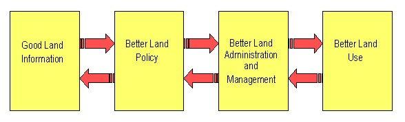 FIGURE 3: Cadastral Concept (FIG, 1995) While the FIG Statement on the Cadastre was important, it did not fully recognise the role that cadastres play in the operation of land markets. As a result, the United Nations with the support of the FIG developed the "Bogor Declaration on Cadastral Reform" (UN-FIG, 1996). The Bogor Declaration proposed the development of " modern cadastral infrastructures that facilitate efficient land and property markets, protect the land rights of all, and support long term sustainable development and land management". It also established principles for re-engineering cadastral systems. Importantly the Declaration stated that a cadastral infrastructure " can support a vast array of legal, technical, administrative and institutional options in designing and establishing an appropriate cadastral system, providing a continuum of forms of cadastre ranging from the very simple to the very sophisticated. Such flexibility allows cadastres to record a continuum of land tenure arrangements from private and individual land rights through to communal land rights, as well as having the ability to accommodate traditional or customary land rights." Further it stated that " The success of a cadastral system is not dependent on its legal or technical sophistication, but whether it protects land rights adequately and permits those rights to be traded (where appropriate) efficiently, simply, quickly, securely and at low cost. However if the resources are not available to keep the cadastral system up-to-date then there is little justification for its establishment." (UN-FIG, 1996) As mentioned the English speaking world did not fully embrace the cadastral concept until the late 1970s or early 1980s (McLaughlin 1975; NRC, 1983; Williamson, 1983; Dale and McLaughlin, 1986). However many of the basic principles were adopted much earlier, especially cadastral surveying principles (Dale, 1976; Binns and Dale, 1995; Dowson and Sheppard, 1953). The 1990s has seen many more books, articles and conferences concerned with cadastral systems and cadastral reform, such as the Cadastral Reform Conferences at the University of Melbourne in 1990 and 1992 (also see Larsson, 1991; Dale and McLaughlin, 1999). With the collapse of the Communist regimes in Eastern and Central Europe, the United Nations Economic Commission for Europe (UNECE) recognised the need for guidelines to assist countries to establish cadastral systems in support of land markets. The UNECE established a Meeting of Officials of Land Administration (MOLA) to develop the Land Administration Guidelines (UNECE, 1996). Due to the importance of land administration in supporting market economies, MOLA has now been upgraded to the Working Party on Land Administration (WPLA). As a result of the continuing debate as to what constitutes a "cadastre", particularly in Europe, the UNECE adopted the term "land administration" instead of "cadastre". MOLA defined land administration as "the process of determining, recording and disseminating information about the tenure, value and use of land when implementing land management policies" (UNECE, 1996). In this context land administration is considered to include land registration, cadastral surveying and mapping, fiscal, legal and multi-purpose cadastres and parcel based land information systems, and in many systems, information supporting land use planning and valuation/land taxation systems. For the purposes of this paper the term "cadastre" will be used to describe the core land administration functions of land registration, cadastral mapping, a computerised parcel based information system together with the information and communication technologies associated with maintaining and accessing the cadastre. At the same time, the FIG continues to investigate cadastral issues in its Commission 7 (Cadastre and Land Management) (see www.fig.net). In 1994 the Commission established a Working Group to describe a future cadastre in 20 years (Cadastre 2014) (Kaufmann and Steudler, 1998). Cadastre 2014 recognises the changing relationship of humankind to land, the changing role of governments in society, the impact of technology on cadastral reform, the changing role of surveyors in society and the growing role of the private sector in the operation of the cadastre. Importantly Cadastre 2014 emphasises the importance of cadastres being complete and including all public as well as private rights in the cadastre. Cadastral reform and associated land titling and land administration projects today still emphasise the key role of documenting individual private rights in support of land markets. However there is a growing recognition in many countries, in organisations such as the United Nations and The World Bank, and with land administration practitioners, that land administration, and particularly the core cadastral system, has an equally important role in supporting sustainable development objectives, rather than the traditionally narrow focus on land markets (Wiebe and Meinzen-Dick, 1998). This resulted in the development of the joint United Nations-FIG Bathurst Declaration on Land Administration for Sustainable Development (UN-FIG, 1999; Williamson et al, 2000). The Bathurst Declaration concluded that "most land administration systems today are not adequate to cope with the increasingly complex range of rights, restrictions and responsibilities in relation to land, which are influenced by such factors as water, indigenous land use, noise and pollution". In short, land information and land administration systems need to be re-engineered and to evolve to face the increasing complexity of the humankind-land relationship. They will need to play a fundamental role in facilitating and supporting the complex decision making that is integral to sustainable development as shown in Figure 4. In short sustainable development is just rhetoric without appropriate land administration systems. (UN-FIG, 1999)