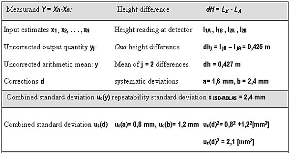 Table 1: Scheme for the calculation of the uncertainty of measurement of rotating lasers (numerical values are fictive) 5. CONCLUSIONSIt is obvious that there are two major reasons for reconsidering the approach of stating the measurement uncertainty as a suited quantitative measure of accuracy in testing and calibrating geodetic instruments: