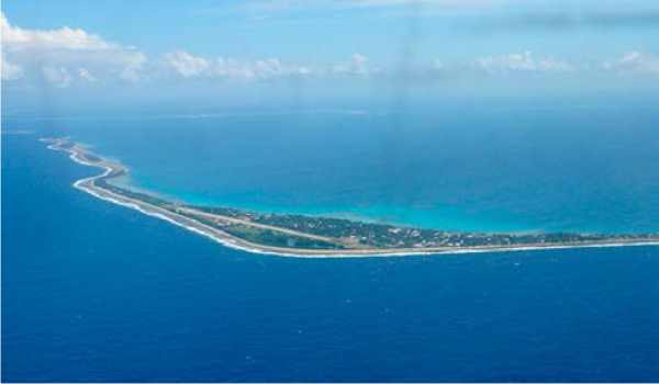 Low laying atoll, Tuvalu in the Pacific Ocean. The capital, Funafuti, is