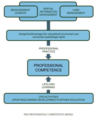 Professional CompetenceThe term professional competence relates to a status as an expert. This status cannot be achieved only through university graduation and it cannot be achieved solely through professional practice. University graduation is no longer a ticket for a lifelong professional carrier. Today one must qualify constantly just to keep up. The idea of "learning for life" is replaced by the concept of lifelong learning. No longer can "keeping up to date" be optional, it is increasingly central to organisational and professional success. The response of the surveying profession, and many other professions, to this challenge has been to promote the concept of continuing professional development (CPD) as a code of practice to be followed by the individual professionals on a mandatory or voluntary basis. Maintaining and developing professional competence is of course the responsibility of the individual practitioner. This duty should be executed by adopting a personal strategy which must be followed systematically. Implementation of such a plan, however, relies on a variety of training options to be offered by different course providers, including the universities. The individual practitioner should be able to rely on a comprehensive CPD concept which is generally acknowledged by the profession and which is economically supported by the industry (public as well as private). Furthermore, the practitioner should have a variety of training and development options available for implementation of his or her personal plan of action. The options should be developed by the universities offering for example one-year masters courses as part time studies based on distance learning; and also by private course providers offering short courses for updating and just-in-time training. These options should be developed in co-operation between the universities, the industry and the professional associations.